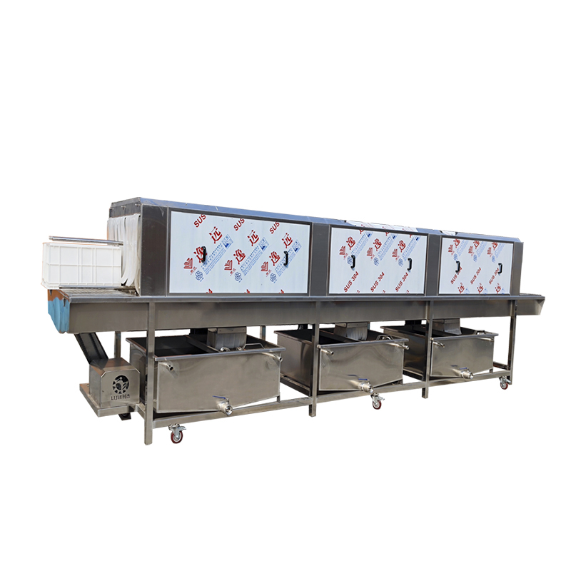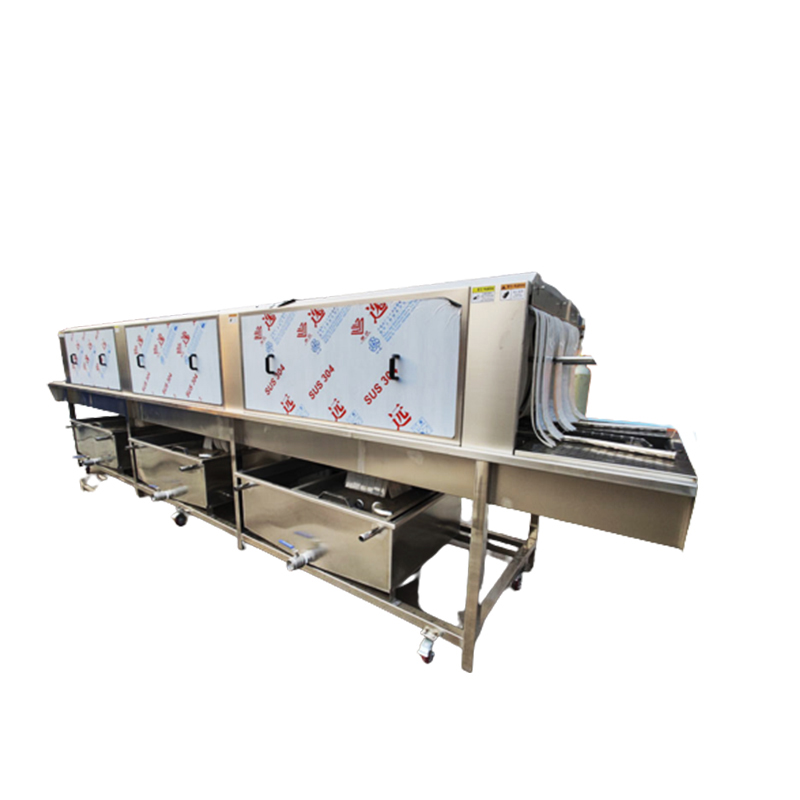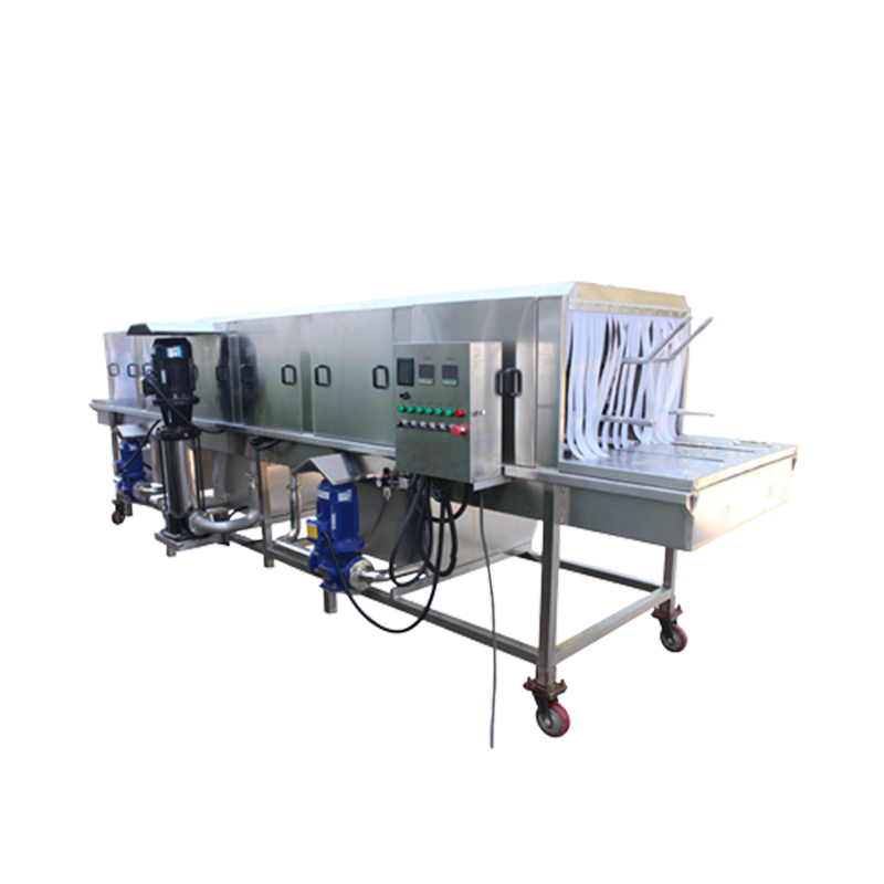 The turnover crate washing machine uses a high-pressure spray system to strongly rinse the surface of the turnover basket from multiple angles with clean water or detergent solution at a certain temperature and pressure. It uses the impact force of the water flow to peel off oil stains, food residues, dust and other dirt on the basket body. At the same time, some equipment is equipped with a brush for auxiliary cleaning, which wipes the hard-to-clean parts such as gaps and grids of the basket body. Combined with a circulating filtration system, it purifies and reuses the cleaning water, improving cleaning efficiency and water-saving effect.