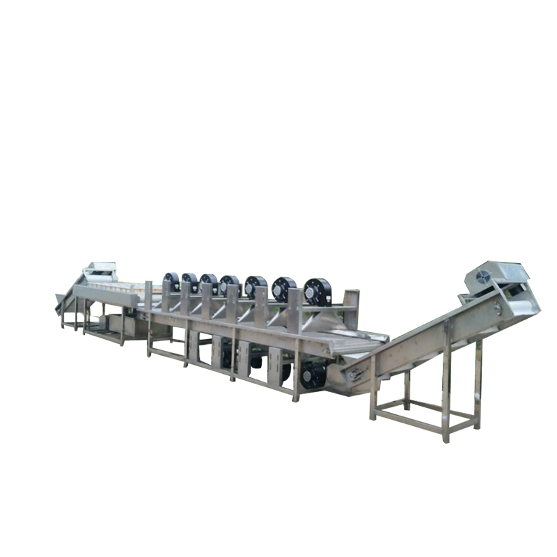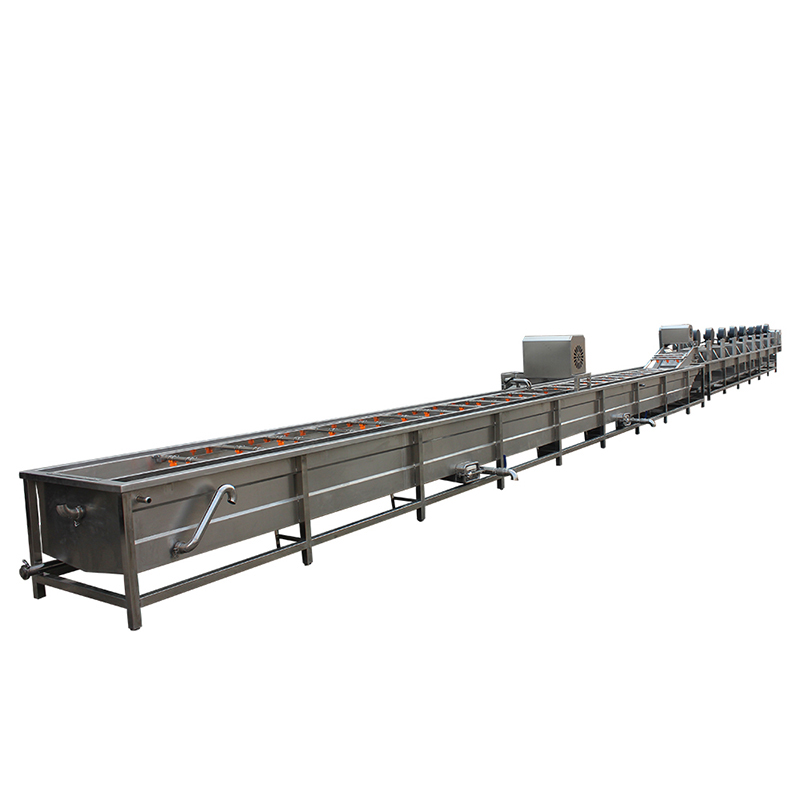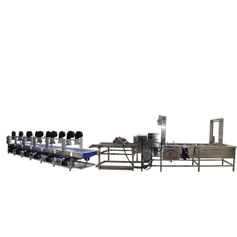 The fruit and vegetable washing and drying machine is a set of automated processing equipment specially designed for fresh fruits and vegetables. Integrating functions such as washing, impurity removal and air-drying, it can efficiently remove sediment, pesticide residues, microorganisms, and impurities from the surface of fruits and vegetables. At the same time, it quickly removes surface moisture through air-drying, providing clean and dry raw materials for subsequent processing (such as cutting, packaging, and preservation). It is widely used in fruit and vegetable processing plants, canneries, juice factories, fresh food e-commerce central warehouses, and large catering enterprises.
