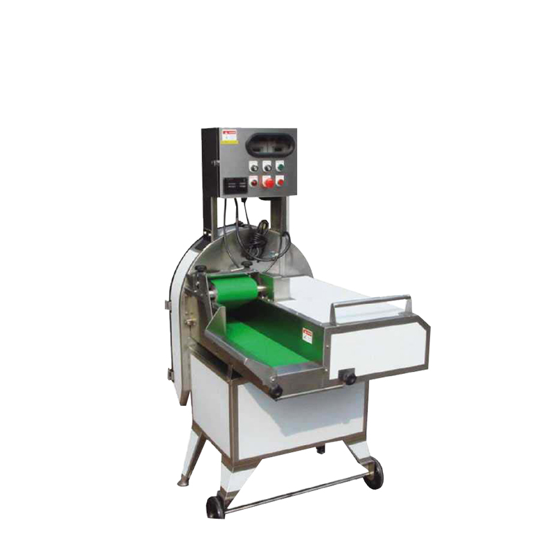 The slicing machine adopts the feed channel on the rotating feeding plate for feeding; the knife and inclined arc-shaped blade are distributed aslant for cutting. It has good quality of cutting section, high efficiency of cutting, easy operation and low consumption and other characteristics.