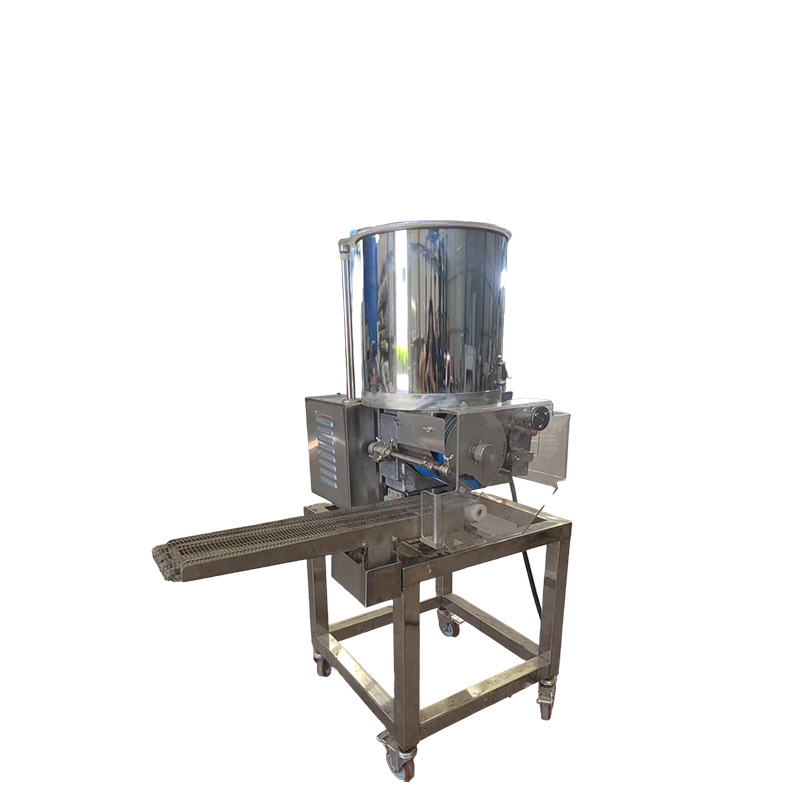 The fully automatic hamburger patty forming machine can automatically complete filling, forming, output and other processes. Products with different shapes (round, square, oval, triangle, heart and other special shapes) can be produced by changing different molds. (The machine is equipped with a kind of shape mould. If you need multiple shape moulds, you need to buy them separately. 450usd for each set of shape mould.)
